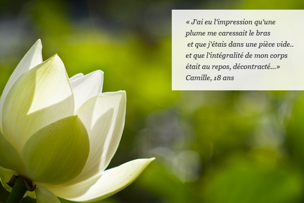 Ces témoignages sont issus de l’échange qui a lieu à la fin de chaque séance, dans lequel la personne décrit ce qu’elle a vécu pendant les exercices, ou de messages envoyés. Les noms des personnes ont été changés, afin de préserver leur anonymat.